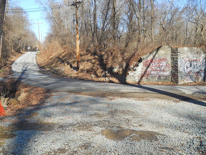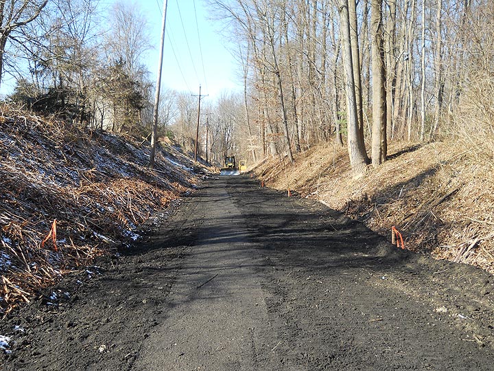 - Looking north (onto Creek Road) at the trail’s intersection with Creek Road