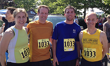 CRR Jay Coughenour, running with the New Balance Masters team, which finished 3rd (2:46:59), ran an opening leg 41:05. CRR Keith Crispin, running for Red Lion Christian Academy (3:23:39), ran a 44:55 leg. CRR Holly Scott, running for the all-female Downstate Delaware Striders & Riders F team (3:31:24), turned in a 53:02. Former Delaware mile-record-holder CRR Jim Bray, part of the 4 Rebels 4 Ever relay (4:03:15), ran a 57:27.