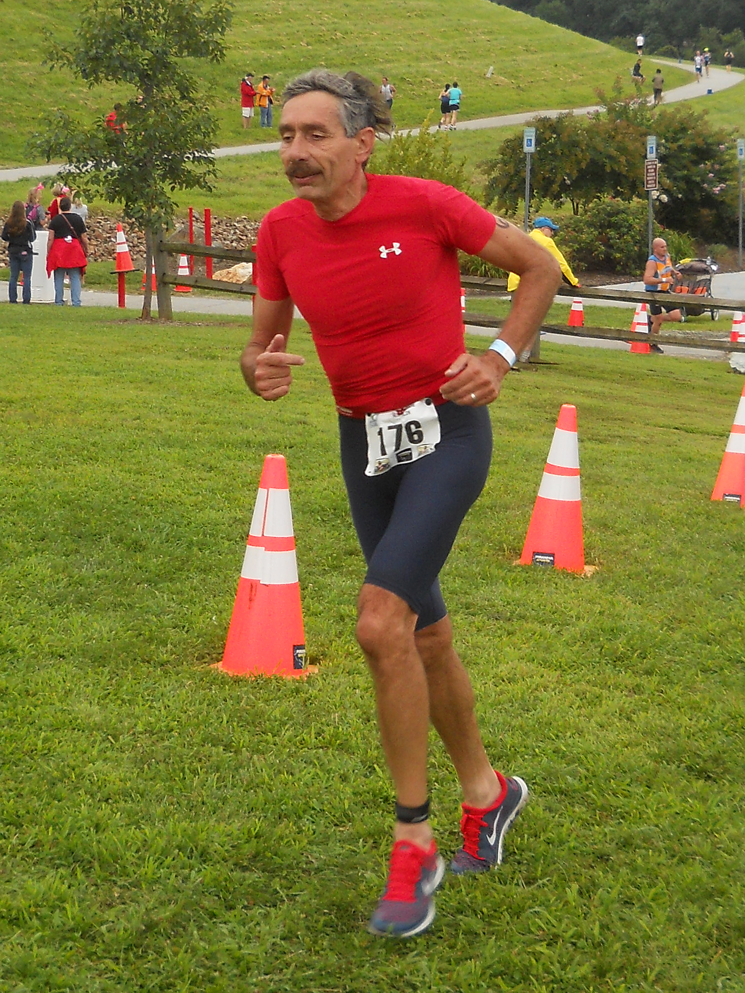 Nine Creek Road Runners successfully completed the inaugural Top of Delaware™ Triathlon yesterday at the Newark Reservoir. The course featured a triangular quarter-mile swim course in the reservoir, a tough 11.4-mile bike loop on Newark-area roads, and a uniquely challenging 2.6-mile run that started at the foot of the reservoir, included portions of the reservoir and William Redd Park trails, and came back down to the foot of the reservoir before finishing with a nasty 50-yard incline straight up the steep side of the reservoir.