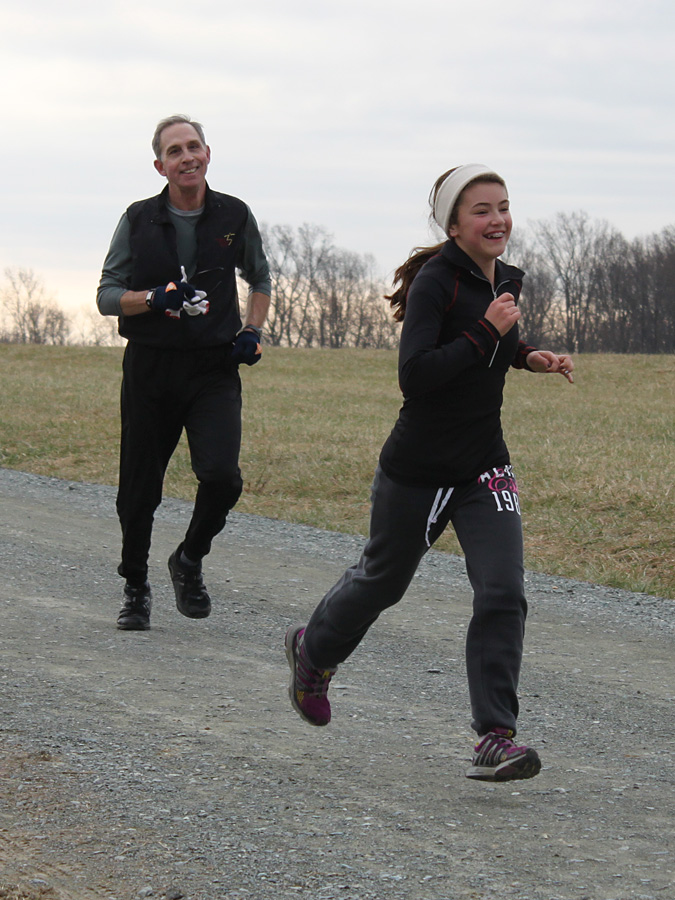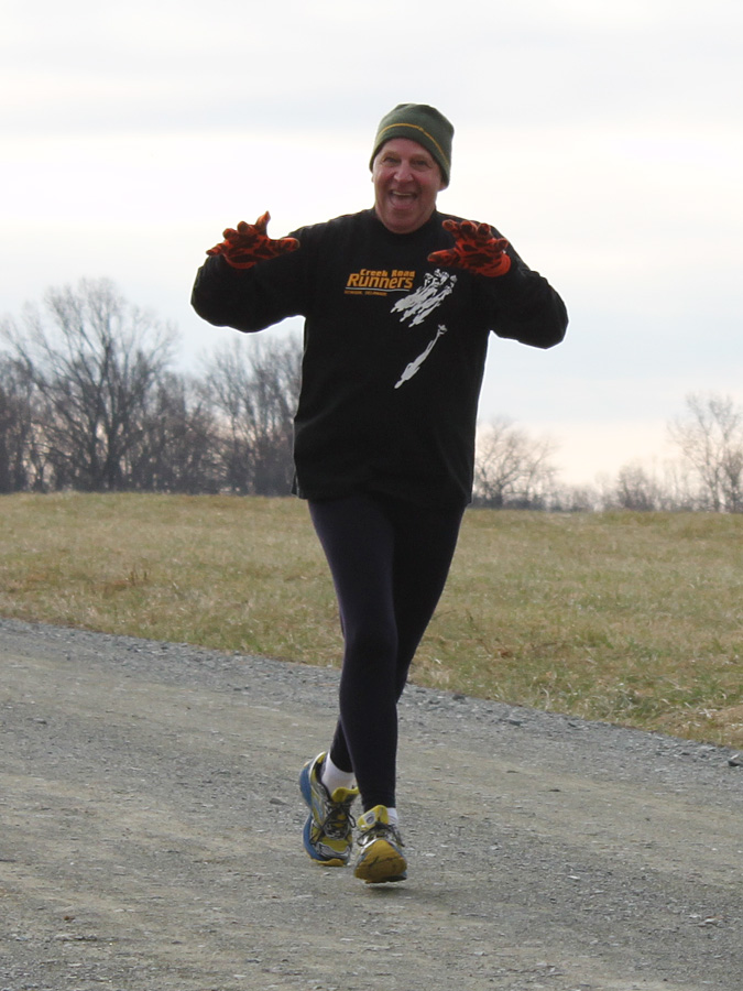 The cold weather made the footing solid most of the way. “Oh, horse poop!” was the double entendre that must have been on the minds of everyone of the runners heading up the long, arduous hill that Kaliakin calls “the monster.”