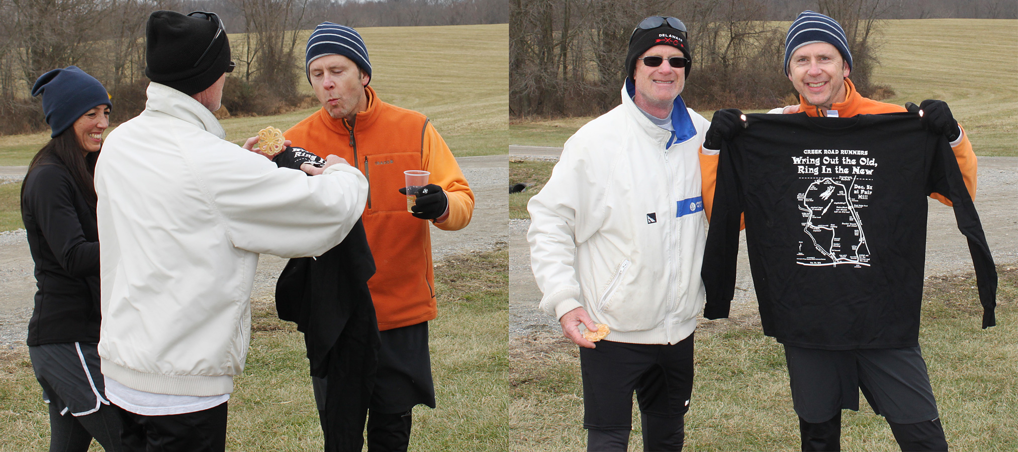 Dave Schultz was the lucky recipient of the course shirt in the newbie random T-shirt giveaway. Hopefully, this will be incentive enough for him and his family to return next Dec. 31. A good time was had by all.