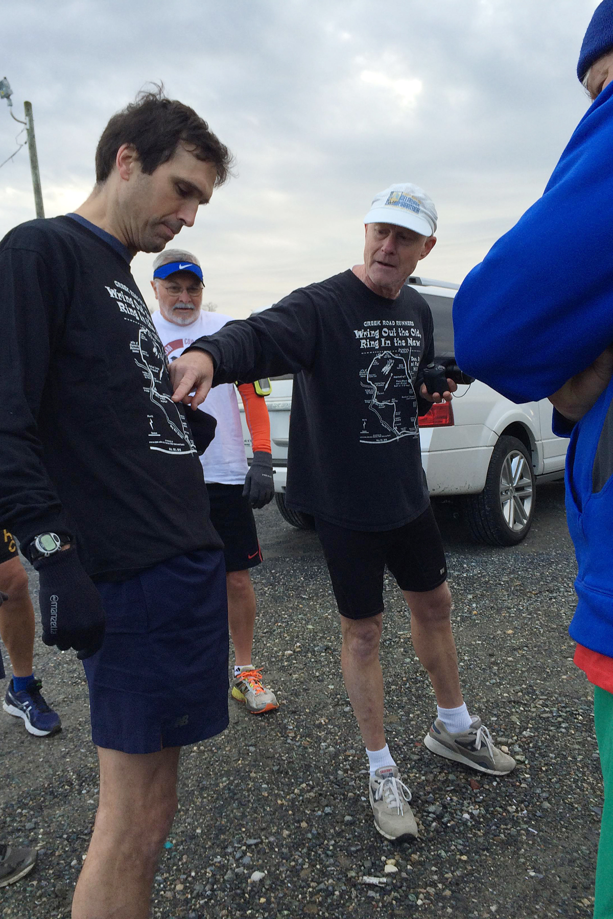 Of course, there was a bit of a hiccup. Self-appointed Creek Road Runners CEO CRR Matt Robinson made it for the second year in a row and inadvertently took CRR Paul Amer on an unintended shortcut. Matt had forgotten that he had run the same shortcut with his son last year and didn’t correct for the fact that Paul was unfamiliar with the course. They did manage to add on some mileage by running out and back on the end of the actual course, though. As Paul would say, “C’est la vie.”