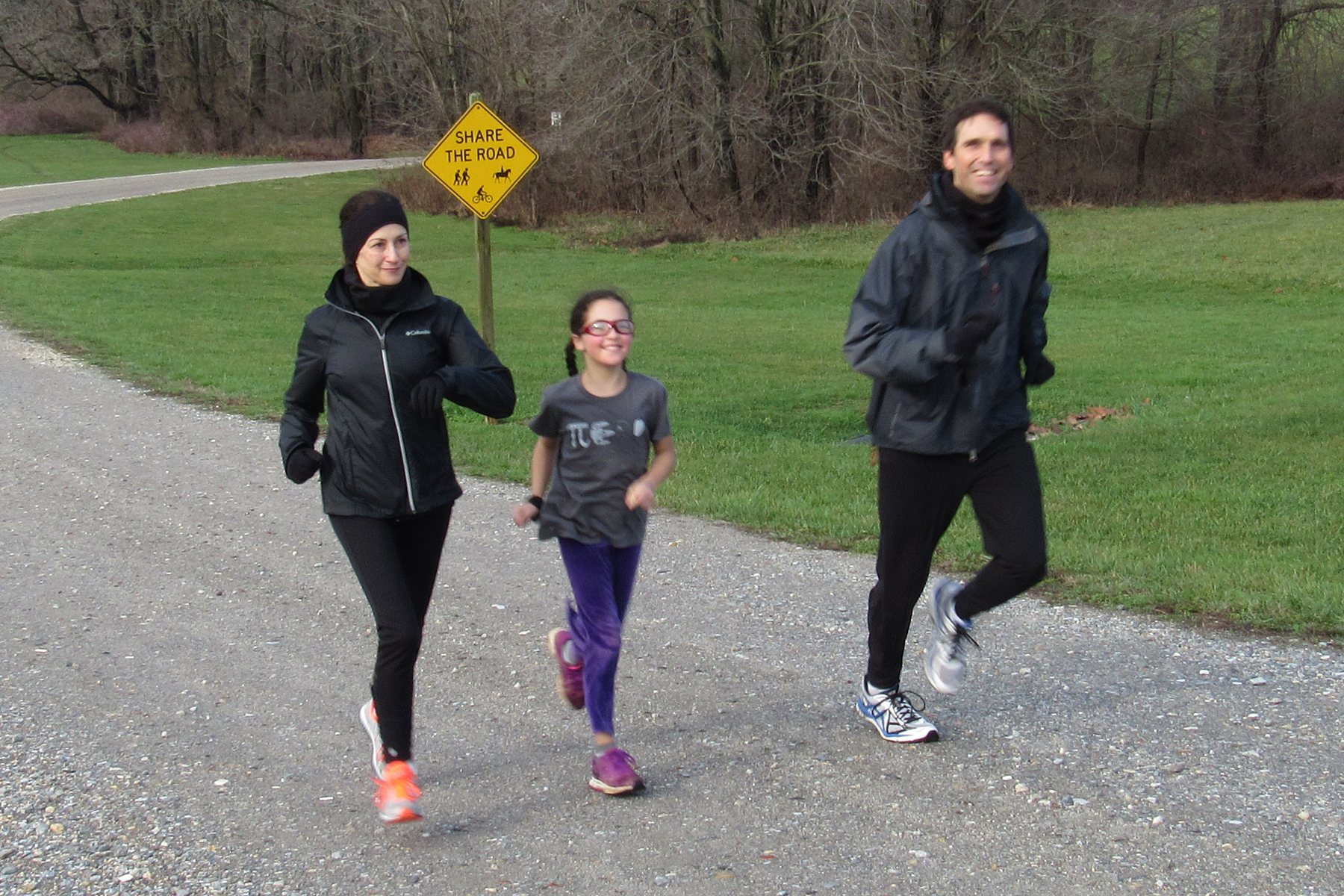 There were five multi-generational pairings or groups present, so the event had a real “family feel.” CRR Dave Schultz and CRR Christine Schultz not only brought their son, Ben, but their dog, Dakota. Dave, Ben, and Dakota took the short route, as did CRR Mike Shay, running with wife, Amy, and daughter, Molly. CRR Dave Edwards and son, Owen, ran the entire loop. CRR Sue Barton came with daughter, Emily, who ran ahead of her mom. CRR Bill Rose ran the loop with his daughter, Allison.