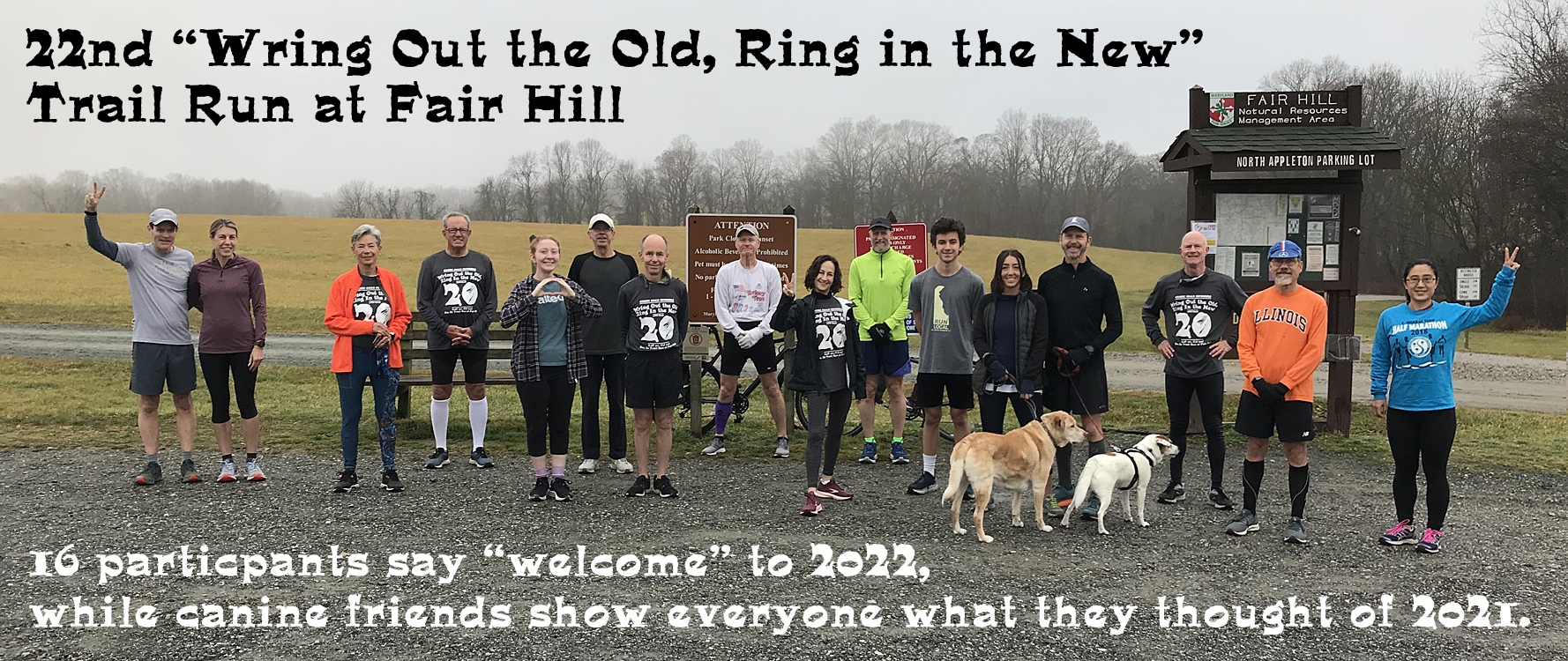 Thanks to CRR Bill Rose and his wife, Karen, for helping renew us this New Year’s Eve day event—“Wring Out the Old, Ring in the New” Trail Run—at the Fair Hill Resources Management Area.