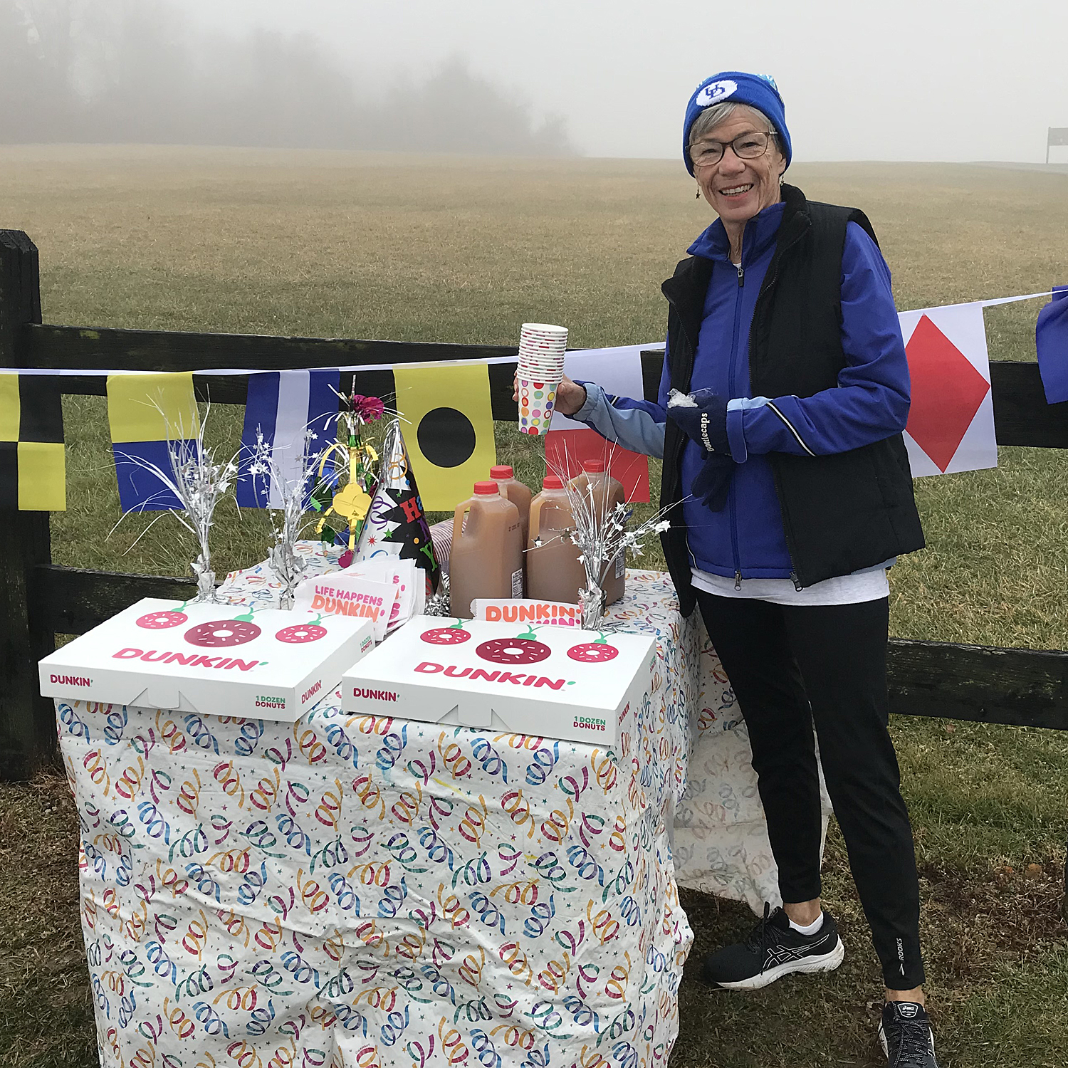Everyone finally found their way back and enjoyed a nice spread of apple cider and donuts (Dunkin’, of course—“official” annual Fair Hill trail run sponsor), making a nice “goodbye” to 2022 and wishing one another a happy new year.