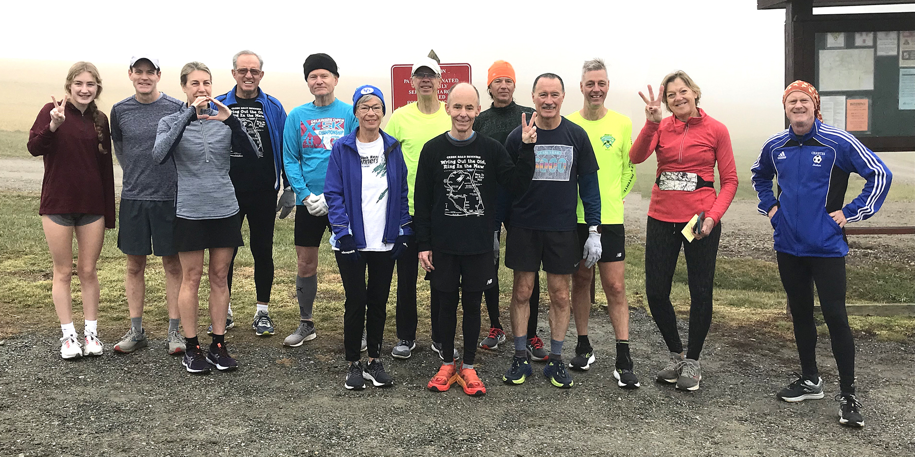 An unusually mild and damp New Year’s Eve morning greeted the runners with thick fog on this, the second Wring Out the Old, Ring in the New trail run since the pandemic struck.