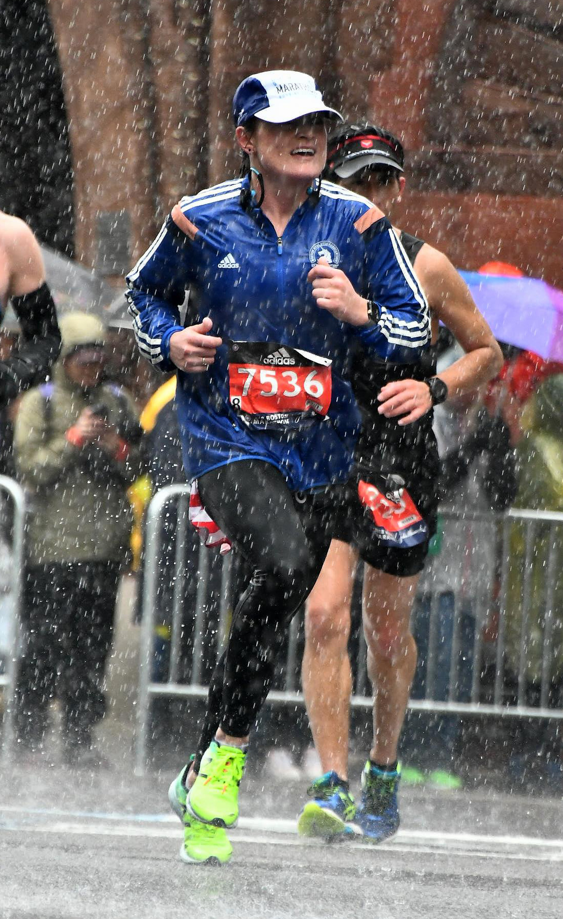 Once I got to the top of the hill, where all the Boston College students were, I felt nothing but love as I looked down into Boston. The last five miles were almost a blur; as you got closer to Boston, you wouldn’t have been able to tell it was a cold rainy day. The crowds were so loud you couldn’t hear yourself think, and I didn’t even feel myself increase my pace. My last mile was 6:56, because, as I turned right onto Hereford and left on Boylston, there was this indescribable feeling of emotions that I felt from conquering that day and being lifted up by my fellow runners and this amazing city.