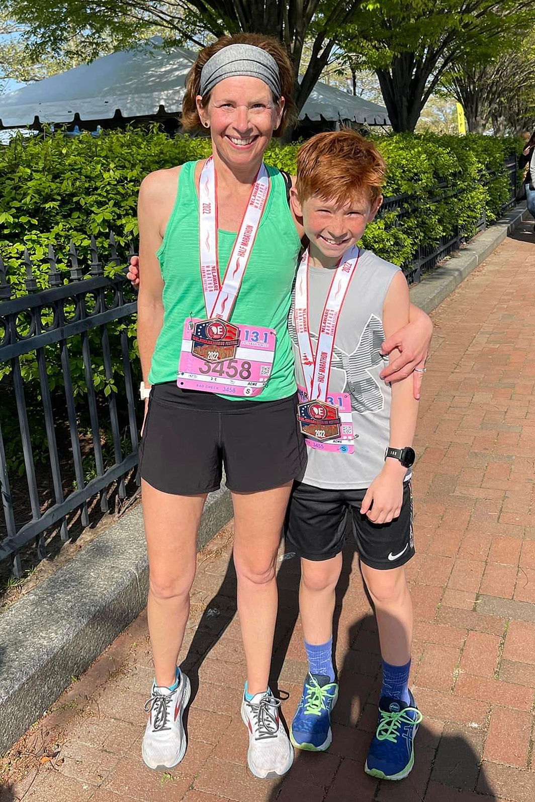 Of particular mention is CRR Martha Narvaez. While she marked a major personal achievement by finishing this race (placing 11th in the 45-49 age group in 2:03:49), her 12-yr.-old son, Lincoln, won the 19-and-under division outright, completing the race in 1:35:50 and finishing in the top 30 overall. That’s 7:19/mile pace for 13.1 miles for a 12-year-old, and it was his first half marathon! Watch out for this young runner over in the next several years and when he gets to compete in high school.