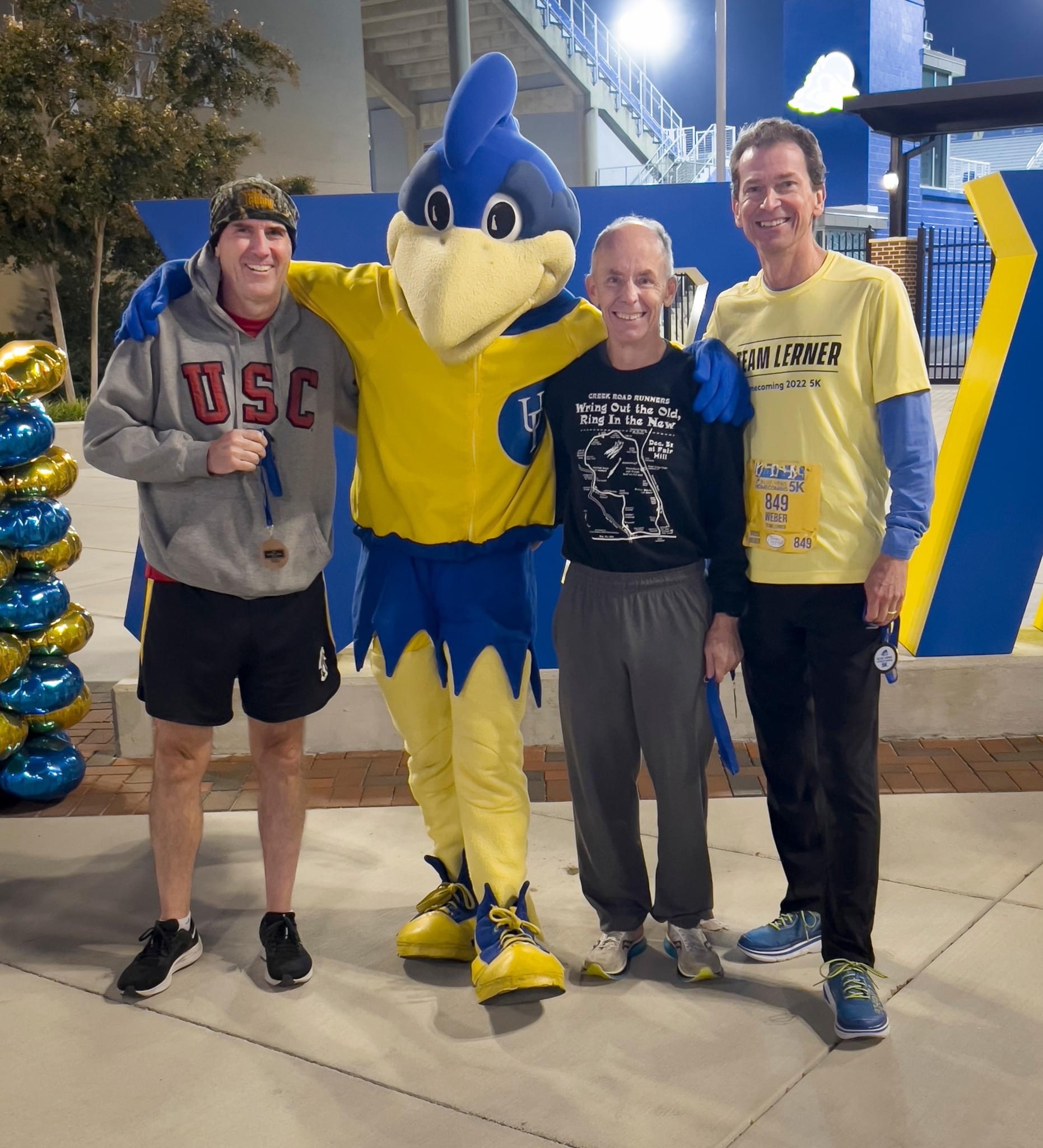 Well, the news story video centered on 70-year-old Guy DeLillio and his friend Jack Garniewski, Salesianum class of 1971 alumni who ran in this year’s Penn Relays as part of the Delaware Running Club masters 400m relay team. But, our own CRR Bill Rose (center in the photo), who is nearing 65, was also on the team that competed and appears in the video.